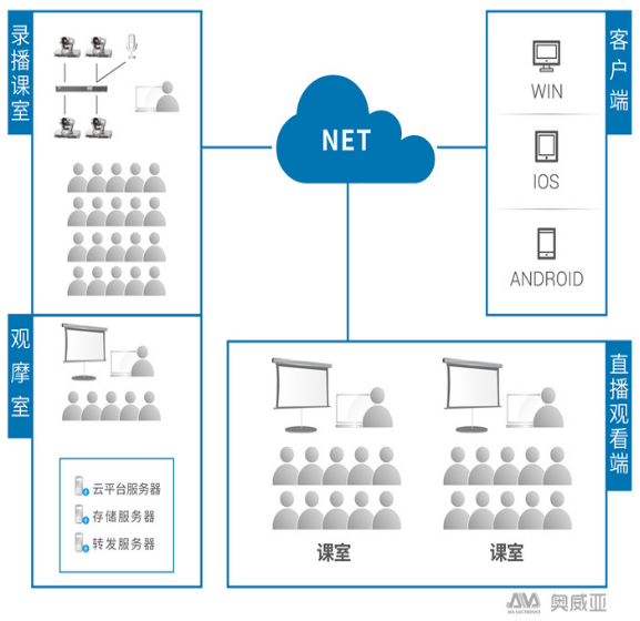 ????????利用AVA高清錄播系統(tǒng)全自動和手動錄制的方法,準確、清晰的把老師課堂實況錄制下來,同時可通過網(wǎng)絡實時直播和視頻點播功能,讓學生在課中和課后進行觀摩學習,從而全面提升教學質量,建設校本教學資源庫。