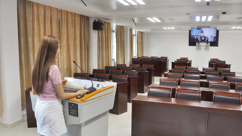 為了滿足教師專業(yè)發(fā)展的基本技能、教學(xué)能力、教育能力、教研能力與創(chuàng)新發(fā)展能力五個(gè)層級(jí)遞進(jìn)的能力需求,奧威亞為肇慶學(xué) 院定制了14類特色功能室,包括:遠(yuǎn)程交互室、教師口語技能實(shí)訓(xùn)室、數(shù)碼音樂教育實(shí)訓(xùn)室、教師形象設(shè)計(jì)室(金太陽音樂坊)、創(chuàng) 意教學(xué)研討室、墨香書畫坊、板書設(shè)計(jì)與簡筆畫實(shí)訓(xùn)室、微課錄播室、微課制作室、教育信息設(shè)備實(shí)訓(xùn)室、VR仿真實(shí)訓(xùn)室、教師工作 室、教學(xué)設(shè)計(jì)實(shí)訓(xùn)室、教師教學(xué)研討室。 部分特色功能室展示,如下: