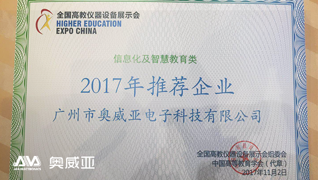 在不久前舉辦的第50屆全國(guó)高教儀器設(shè)備展示會(huì)上,奧威亞將又一行業(yè)大獎(jiǎng)收入囊中!奧威亞榮獲由組委會(huì)、中國(guó)高等教育學(xué)會(huì)聯(lián)合頒發(fā)的信息化及智慧教育類“2017年推薦企業(yè)”。此次評(píng)選活動(dòng),在參展的649家企業(yè)中僅有50家獲評(píng)入選,奧威亞有幸位列其中,且是國(guó)內(nèi)唯一一家入選的錄播企業(yè)。