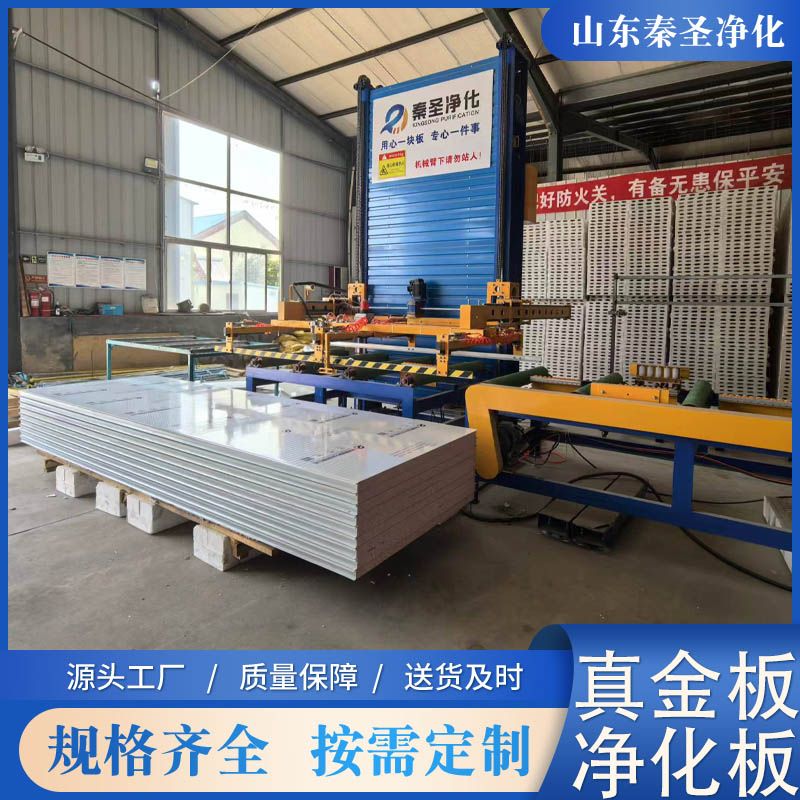 上/下鋼板可以用彩色鋼板或不銹鋼板,厚度大約在0.3-1.0mm左右,芯材由真金板構(gòu)成,板材的有效寬度為950/1150mm,厚度為50-100mm。長(zhǎng)度按客戶要求定做。板面保護(hù)形式為覆PVC保護(hù)膜。