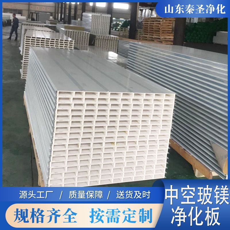 中空玻鎂板以二層5mm防火玻鎂板、中間加防火玻鎂內(nèi)隔條為芯材 ,經(jīng)彩鋼夾芯板多功能連續(xù)生產(chǎn)線復(fù)合成型,中空玻鎂彩鋼夾芯板其特點(diǎn)板材為防火不燃材料組成,有效提高了彩鋼夾芯板的防火性能,又能滿足在有防潮濕環(huán)境條件下使用;其芯材為中空板材,用于車間隔墻在電氣施工鋪設(shè)暗線時(shí)較為方便,該產(chǎn)品投入生產(chǎn)后被廣泛使用于凈化車間無(wú)塵室的吊頂及隔墻。