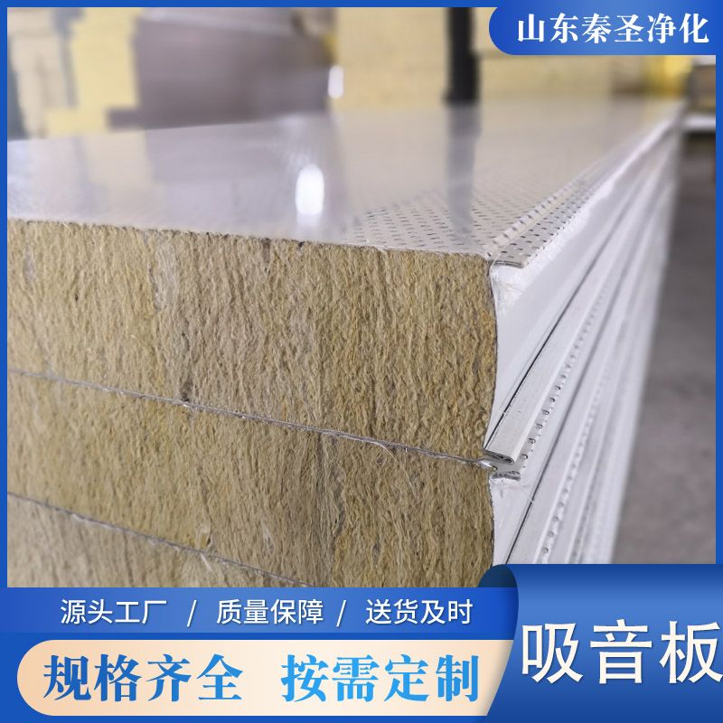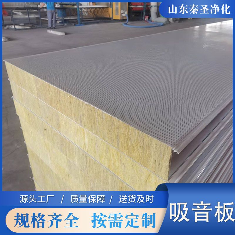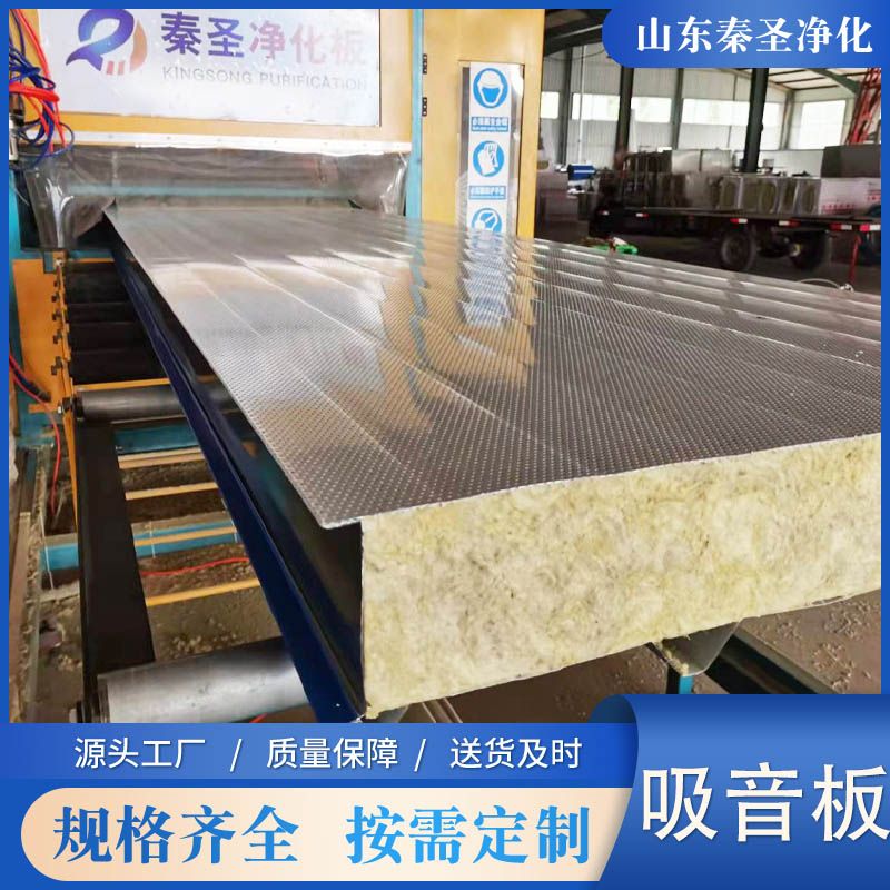 采用0.5-1.0mm彩涂板、鍍鋅板或不銹鋼板沖微孔處理;微孔直徑一般為2.5mm,微孔中心孔距5mm,并成60度角排列,穿孔率達到23%,由于吸音復(fù)合板面板是有孔的彩鋼而芯材是采用巖棉或玻璃棉復(fù)合成型,能很好的阻止空氣流動,使聲波受到阻礙,提高了吸聲系數(shù),同時提高了板材自身強度。板材的有效寬度為950/1150mm,厚度為50-150mm。長度按客戶要求定做。板面保護形式為覆PVC保護膜。